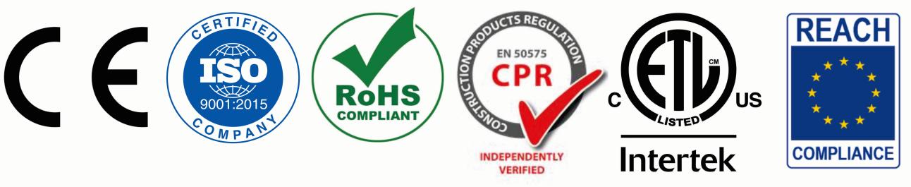 Conforms to | RoHS CPR(Eca) EN 50575:2015/A1:2016 |